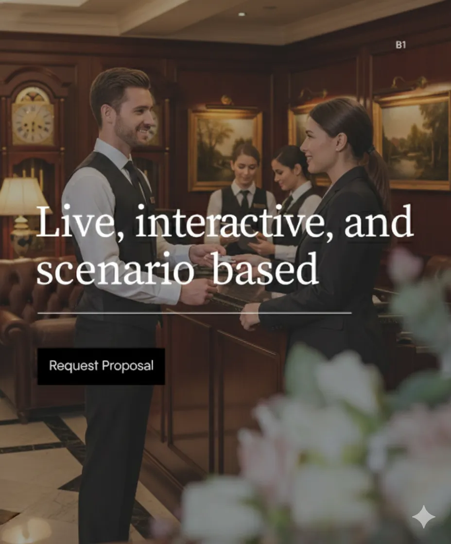 Live online English training for hotel staff to handle complaints, teamwork, and operational communication with confidence.