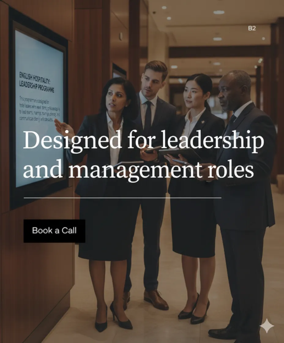 This programme is designed for hotel leaders who need strong, professional English to lead teams, manage change, and communicate clearly with stakeholders.